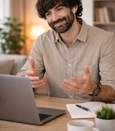 Ofrecemos acompañamiento personalizado, uno a uno, a través de sesiones por videollamada, enfocado en ayudarte a ordenar tus pensamientos, ganar perspectiva y tomar decisiones con mayor conciencia y confianza. Nuestro enfoque es cercano, humano y respetuoso, adaptado a tu proceso personal y a lo que estás viviendo hoy, sin juicios ni fórmulas preestablecidas.